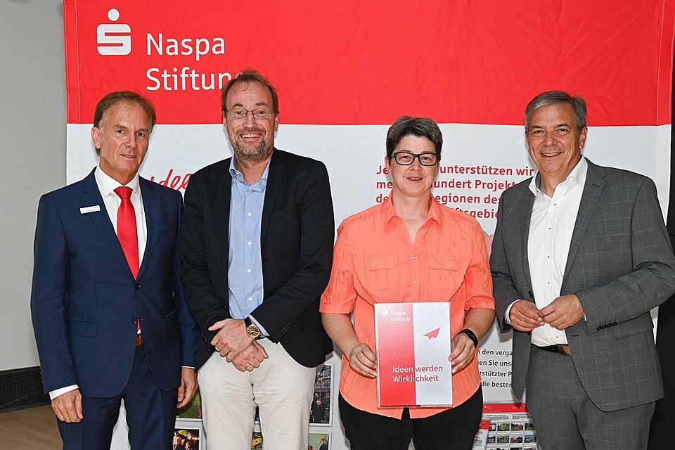 2019: Großzügige Spende der NASPA-Stiftung zum Ausbau des Vereinsheims; NASPA Vorstand Högner, Dr. Zinn, A. Boos, Oberbürgermeister Mende